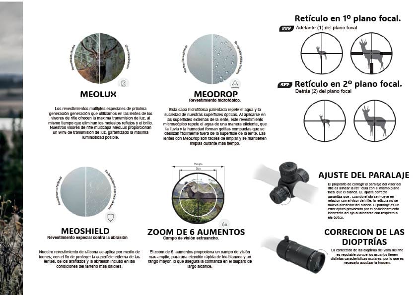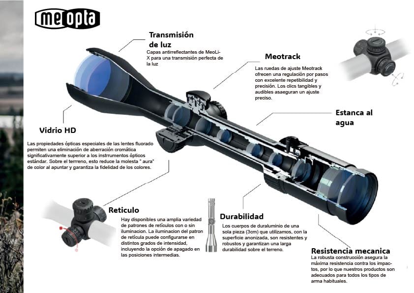 Ajuste: 1 clic = 1 cm/100 m, torretas bloqueables