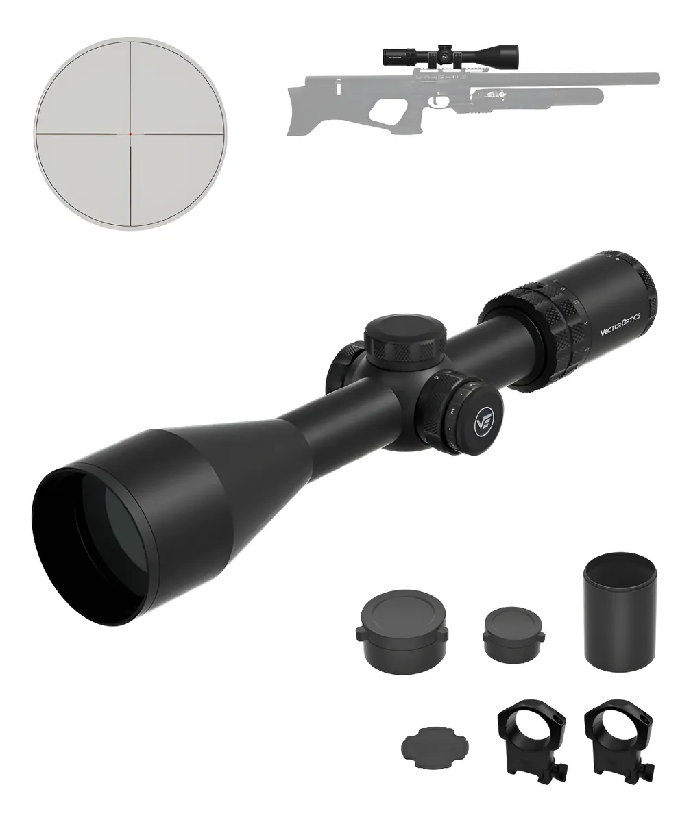 Equipada con el retículo German #4 con punto de fibra iluminado, asegura una visibilidad sobresaliente del centro incluso bajo luz solar intensa. Además, cuenta con enfoque lateral desde los 10 yardas hasta infinito, lo que la hace ideal para la caza, tiros de precisión y escenarios cambiantes.