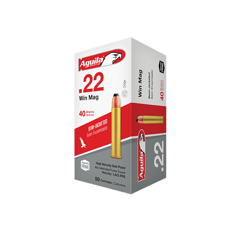 Munición Aguila Calibre 22 Win Mag Semi-Encamisada Alta Velocidad Punta Blanda 40 Grains 1875 FPS Caja x50