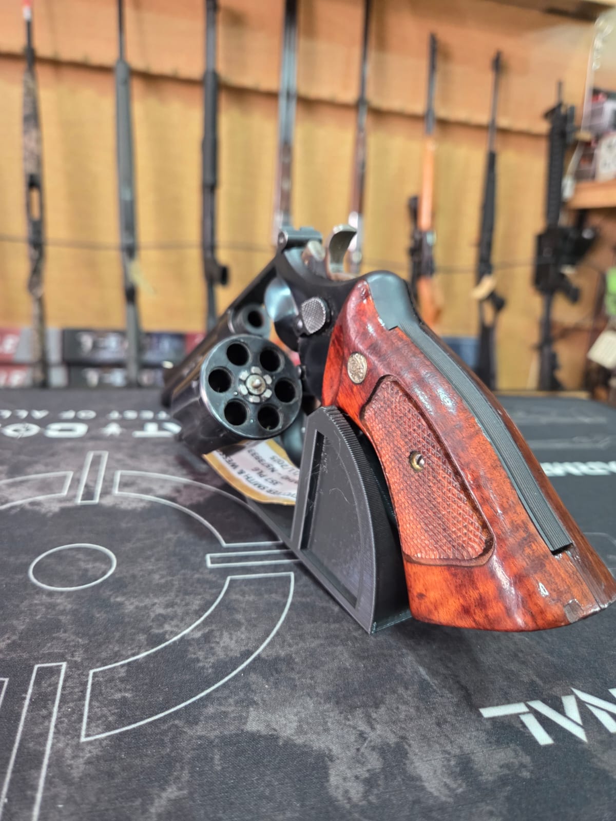 Esta versión de doble acción del calibre .357 Magnum presenta un acabado "azul"