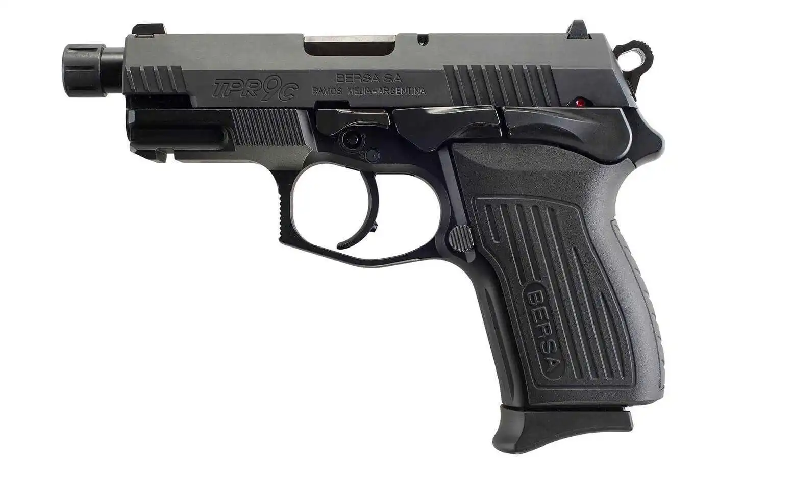 Nueva Pistola Bersa TPR9 CX cal 9mm nuevo diseño de corredera frame reforzado con grip lateral capacidad de 13+1 incluye 2 cargadores,caño con rosca en la punta para apagallamas señalador de bala en recamara, seguros y comandos ambidiestros, riel picatinny, doble fresado en corredera, cachas anatomicas antideslizante, incluye estuche rigido tipo maletin